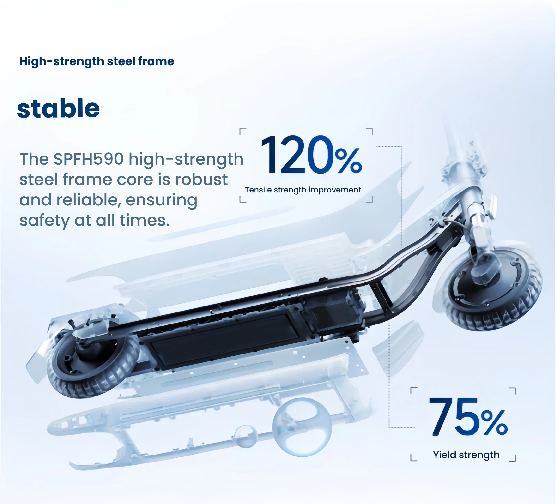 Smooth and Worry-Free Ride: The 8.1-inch inner hollow tires are puncture-proof, maintenance-free, and offer excellent shock absorption for a comfortable journey.[