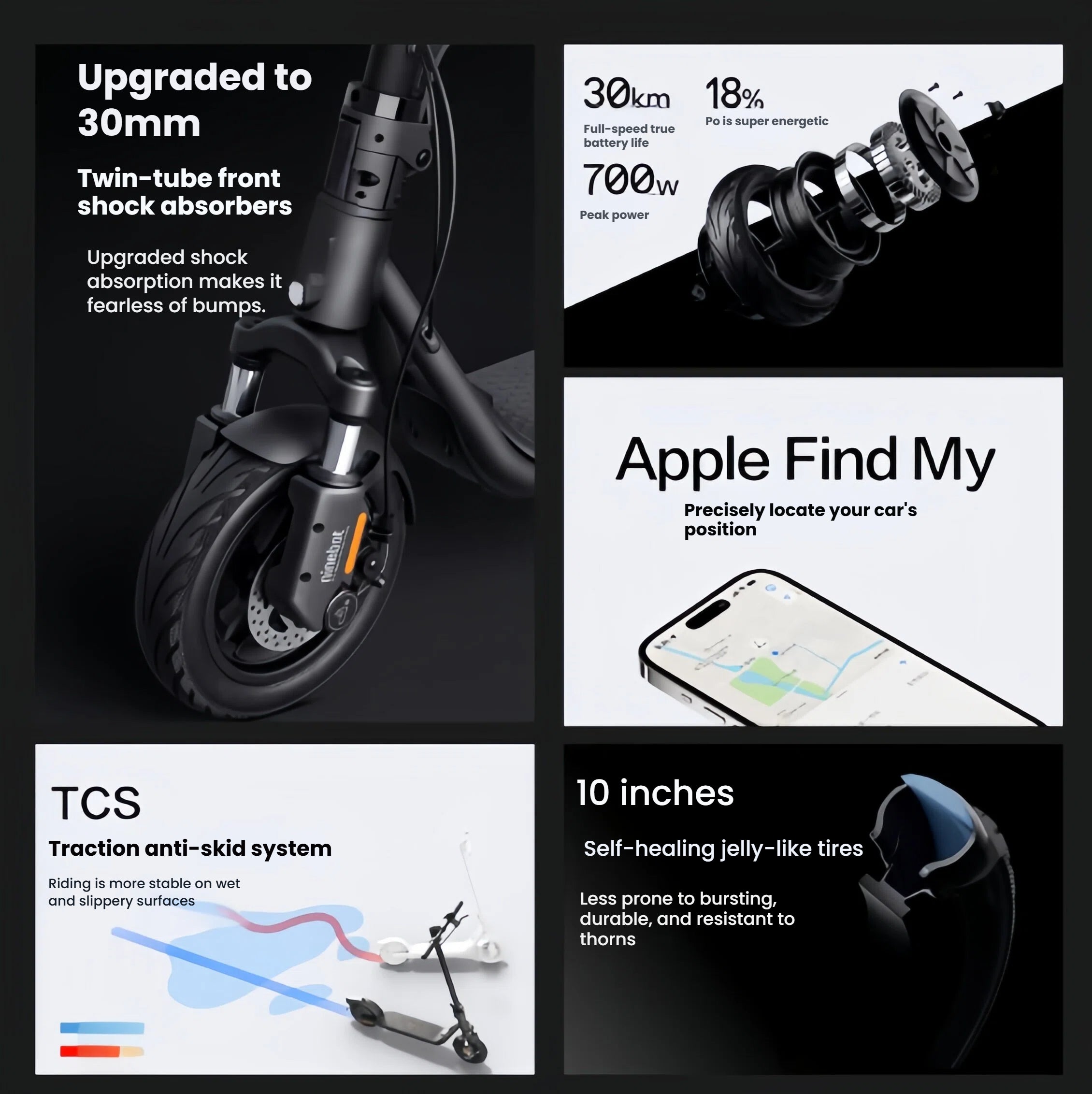 Smooth and Stable Ride: Upgraded 10-inch self-healing tubeless tires absorb bumps and provide a comfortable ride on various city terrains.