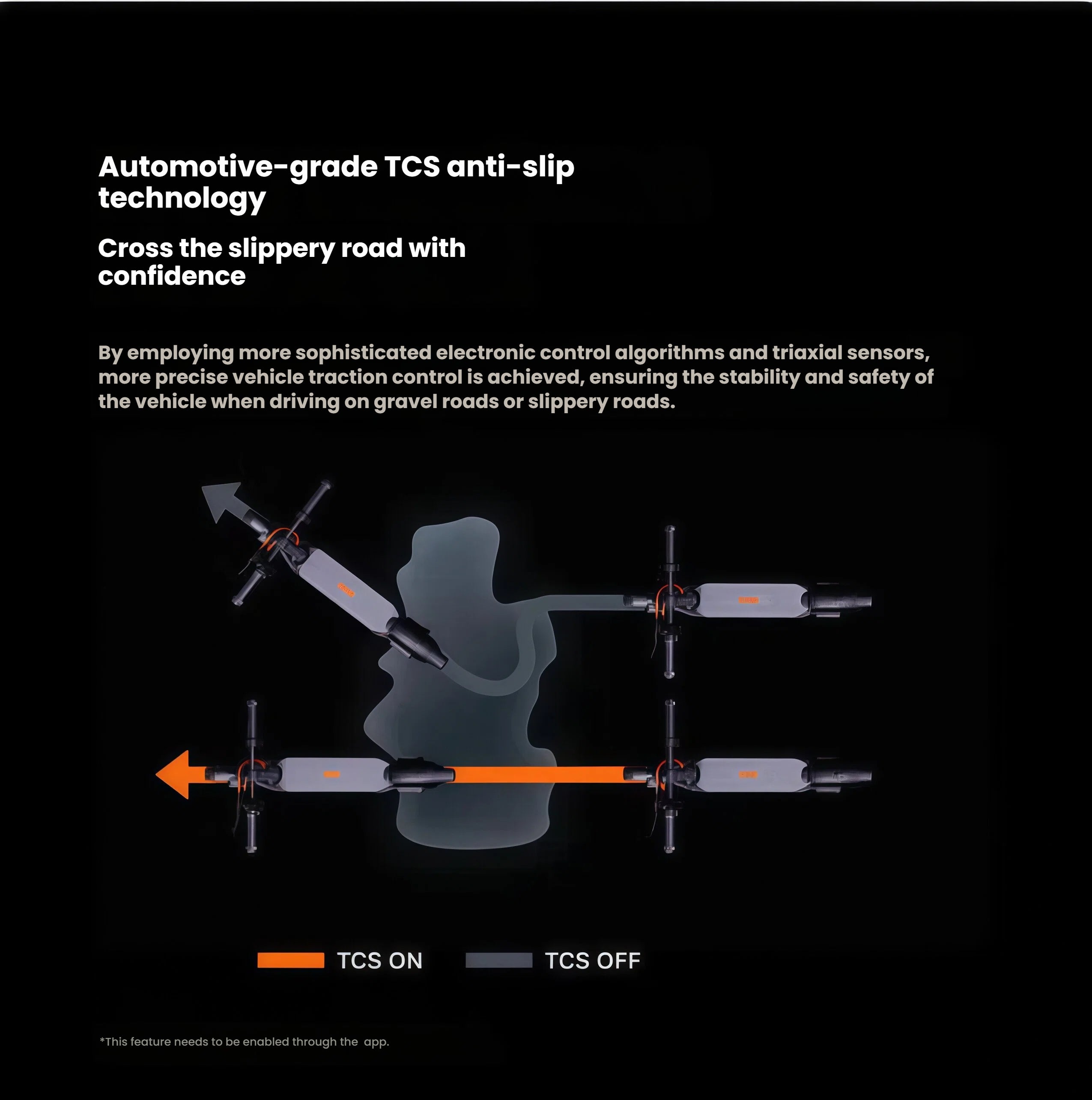 Advanced Safety with TCS: Segway leads the industry with an anti-skid Traction Control System (TCS), providing greater stability and control on slippery or gravel roads.