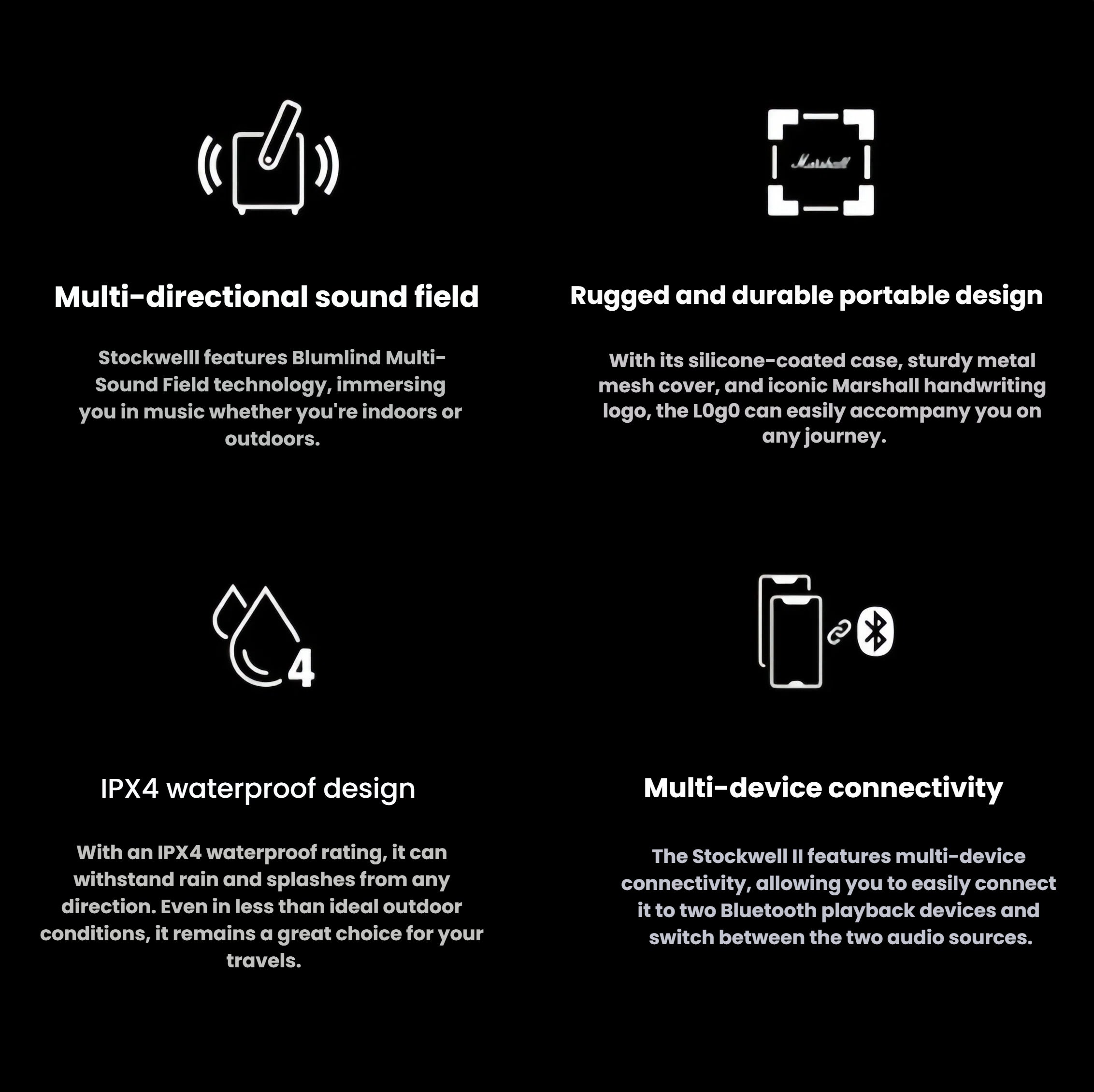Marshall Stockwell II Portable Bluetooth Speaker – Wireless Bluetooth Portable Speaker
