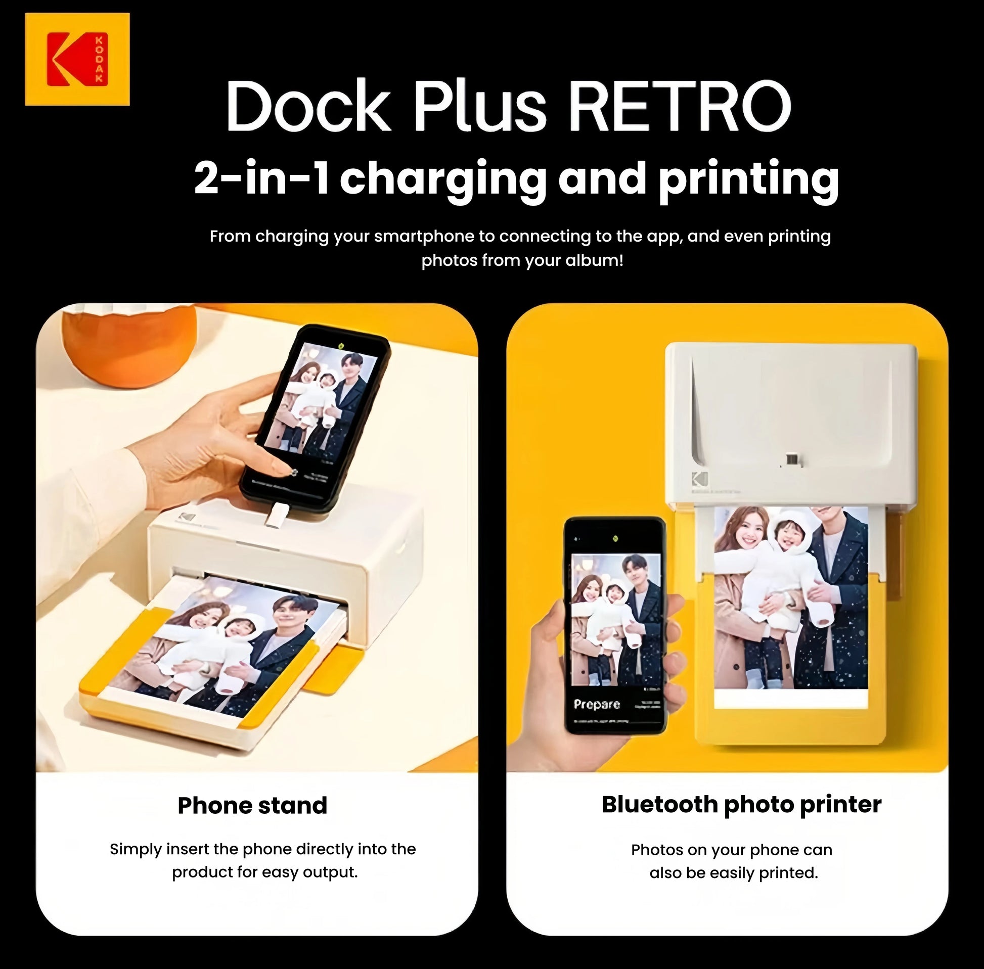 Turn your smartphone memories into gallery-quality, 4” x 6” instant photos with the Kodak Docket Plus Instant Photo Printer—the only portable printer that delivers true borderless, smudge-proof, and water-resistant prints using advanced 4PASS dye-sublimation technology. Unlike inkless ZINK printers, the Docket Plus uses dedicated ink cartridges and photo paper to produce vibrant, lab-quality photos you can proudly frame or gift.