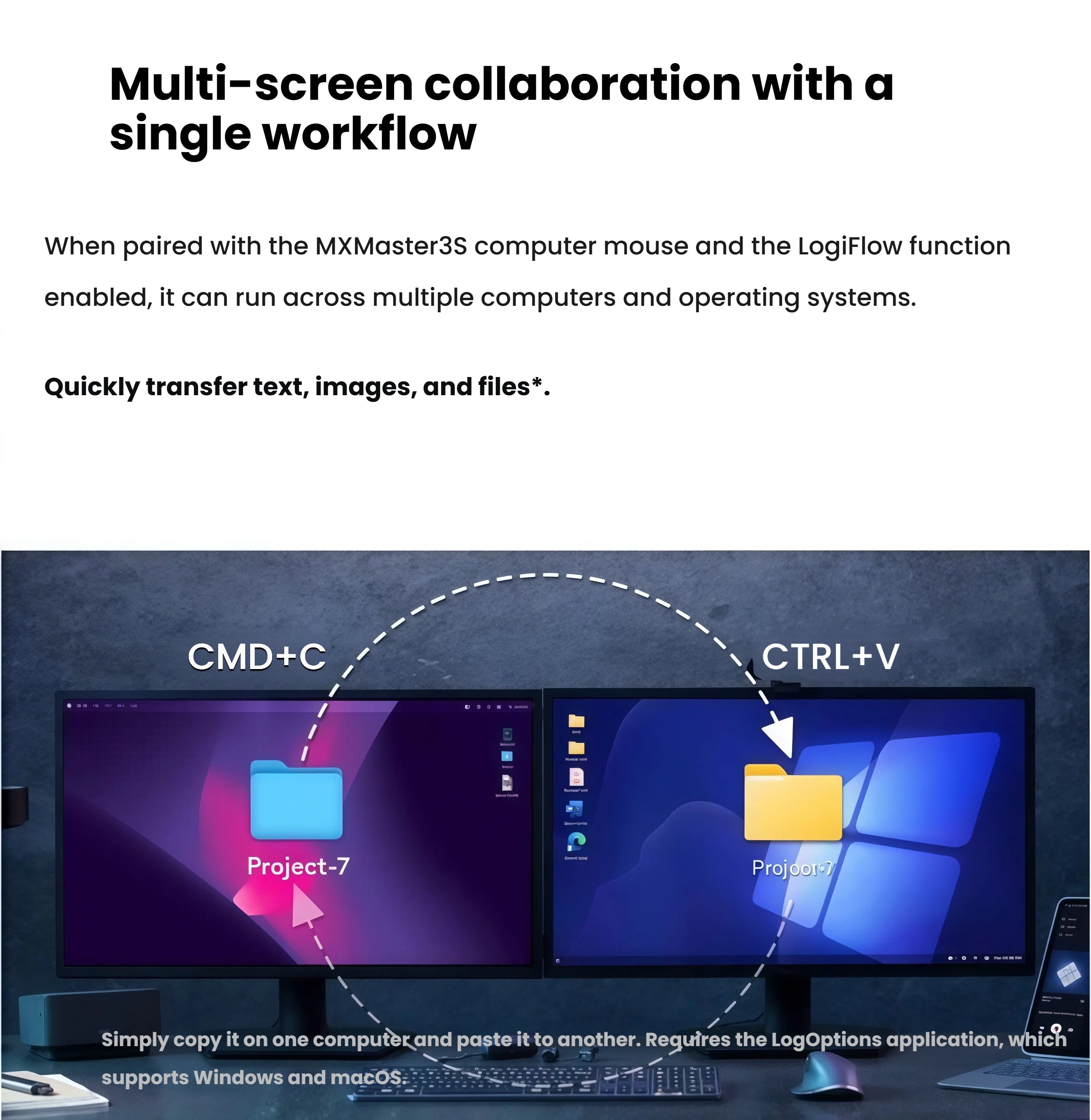 Multi-device & cross-platform support — Connect seamlessly via Bluetooth Low Energy or the included Logi Bolt USB receiver, and switch between up to 3 devices with a single button — laptop, tablet, desktop, etc. Compatible with Windows, macOS, Linux, ChromeOS, iPadOS, Android.