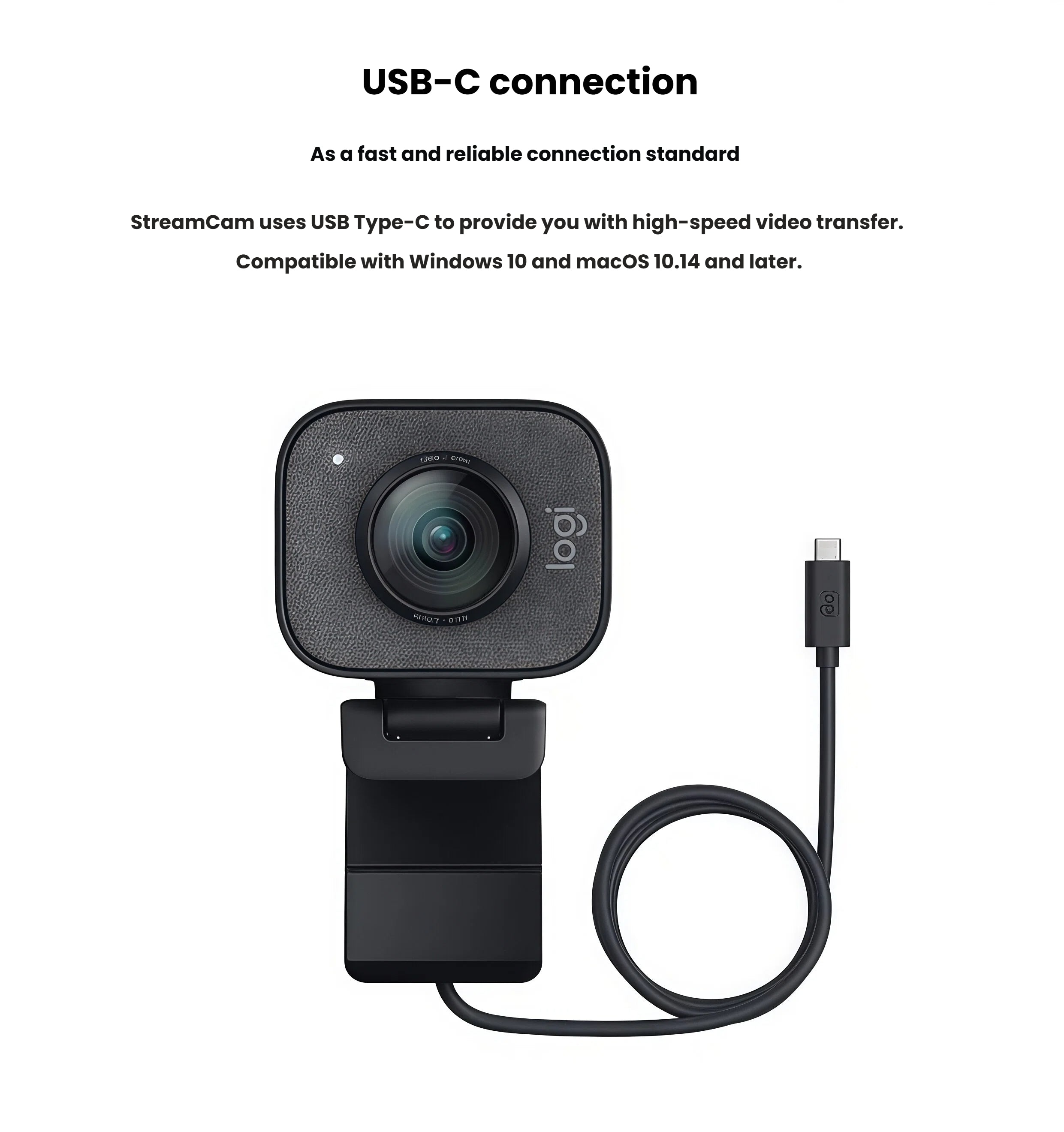 USB-C connection for fast, stable video feed: A USB 3.1 Gen-1 (USB-C) connection ensures sufficient bandwidth for smooth 1080p60 video — no lag, no fuss.